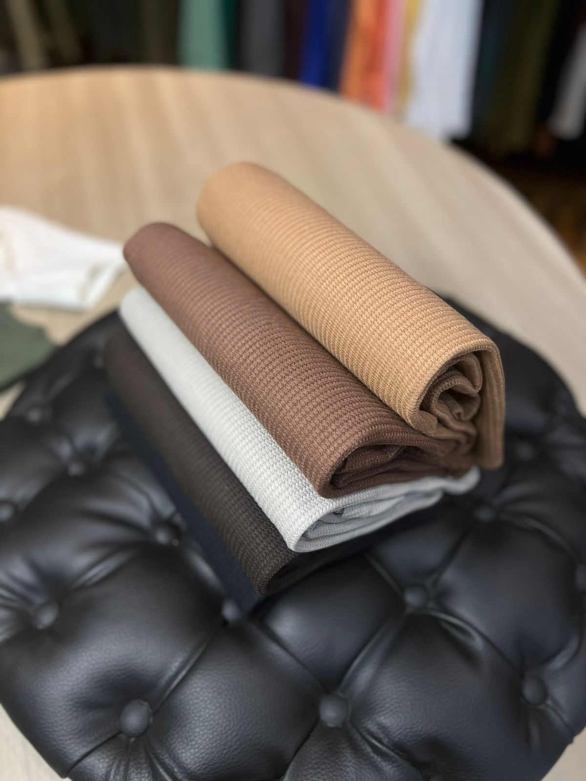Produzida no nobre tricot trazendo o efeito de texturas