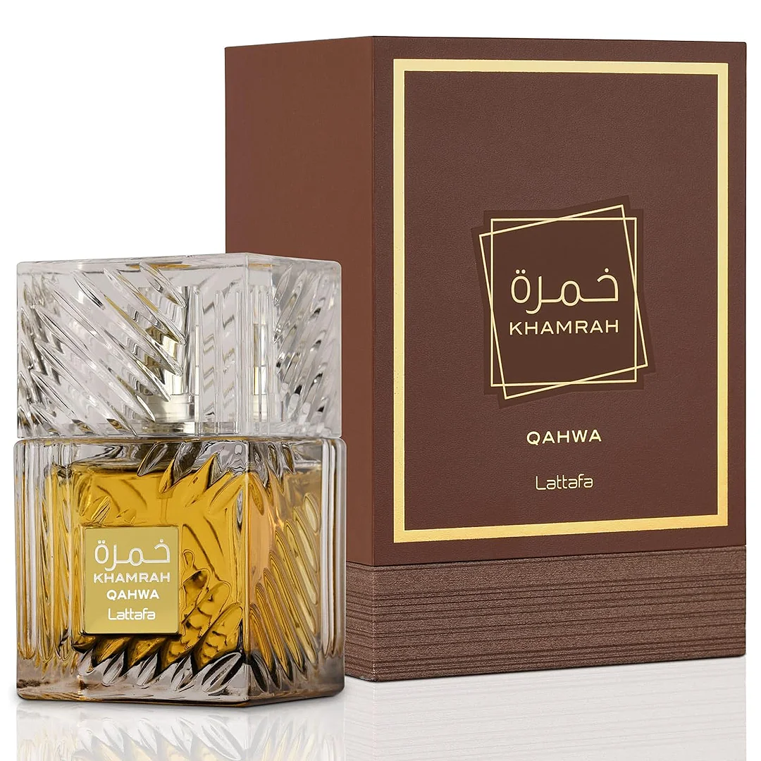 Khamrah Qahwa de Lattafa Perfumes é um perfume Oriental Baunilha Compartilhável. Khamrah Qahwa foi lançado em 2023. As notas de topo são: Canela, Cardamomo e Gengibre. As notas de coração são: Pralinê, Fruta Cristalizada e Flores Brancas. As notas de fundo são: Baunilha, Café, Fava Tonka, Benjoim e Almíscar.