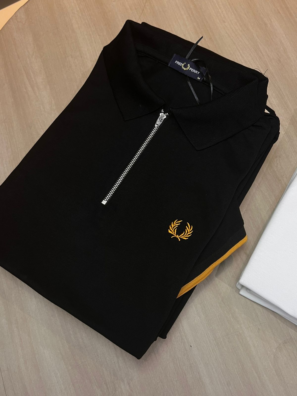 Polo FRED PERRY com lapela em ziper e friso na manga
